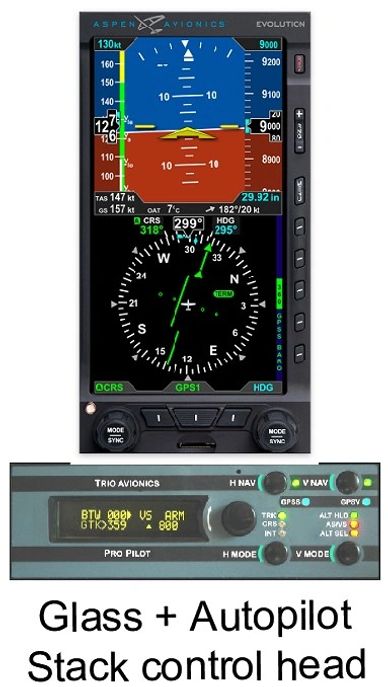 The Trio Autopilot system is a full featured aircraft control system for a remarkably low price. Track, Corse, Intercept, GPSS, GPSV, Altitude hold, Climb/Descend, Altitude PreSelect.
